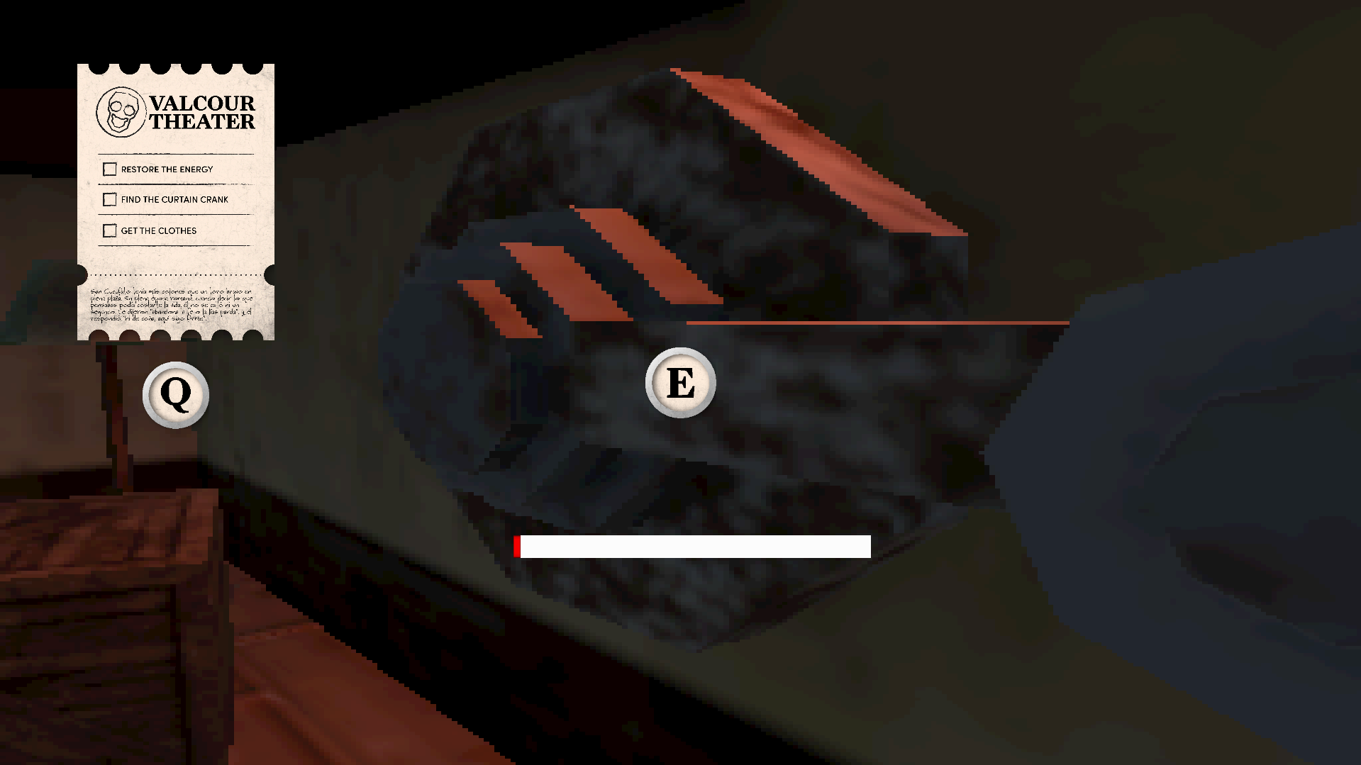Your task is to complete a series of stage-preparation duties to get the play ready. Move props, arrange the space, and finish what was left unfinished.